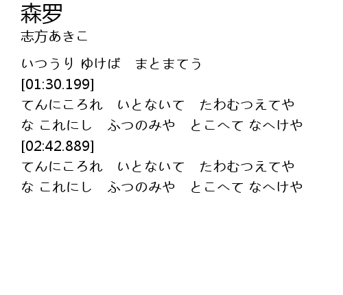 | [02:02.646] | てんにころれ いとないて たわむつえてや |