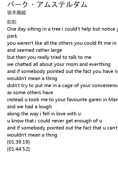 | [00:03.65] | One day sitting in a tree i could' t help but notice you there in the park |
