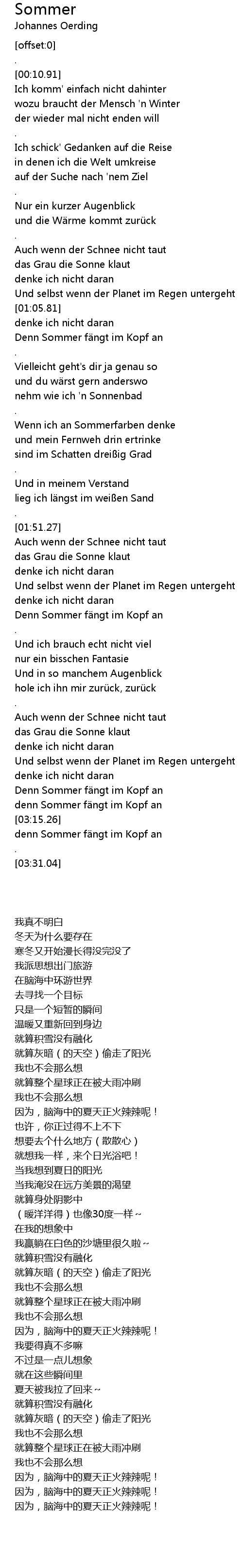 | [03:12.86] | denn Sommer f ngt im Kopf an |