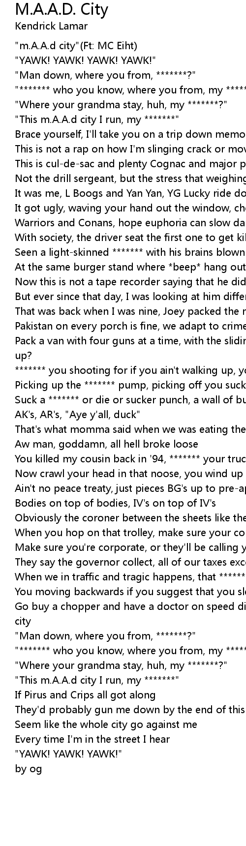 [02:08.17] "This m.A.A.d city I run, my *******"