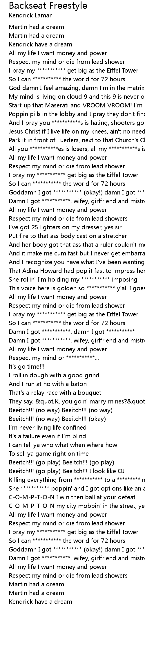 Goddamn I got *********** (okay!) damn I got *********** (okay!) |