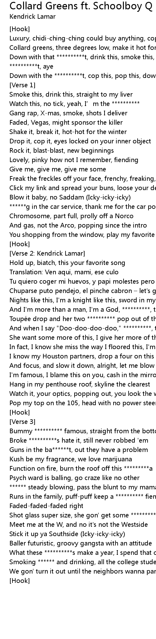 | Song | Collard Greens ft. Schoolboy Q |