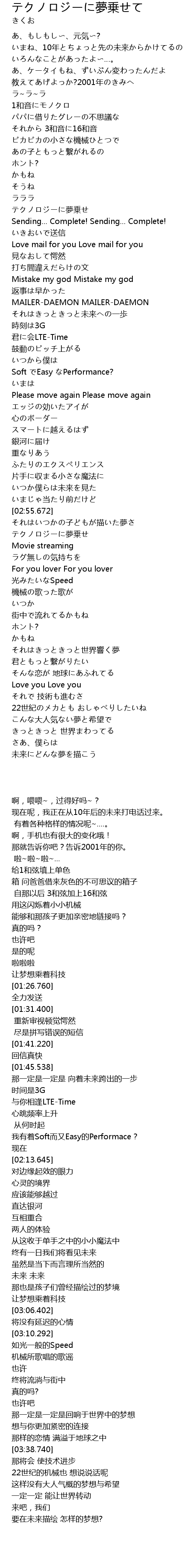 | [03:03.512] | テクノロジーに夢乗せ |