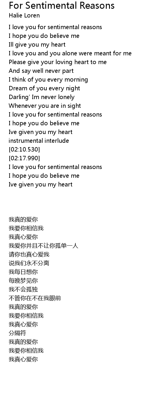 I love you for sentimental reasons |