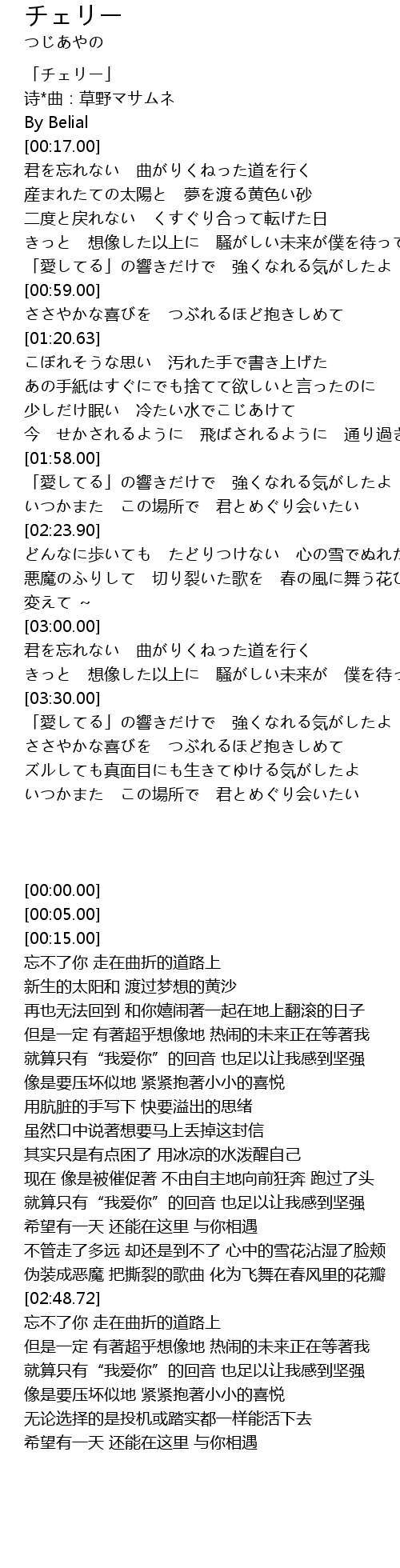 | [02:38.00] | 悪魔のふりして 切り裂いた歌を 春の風に舞う花びらに |