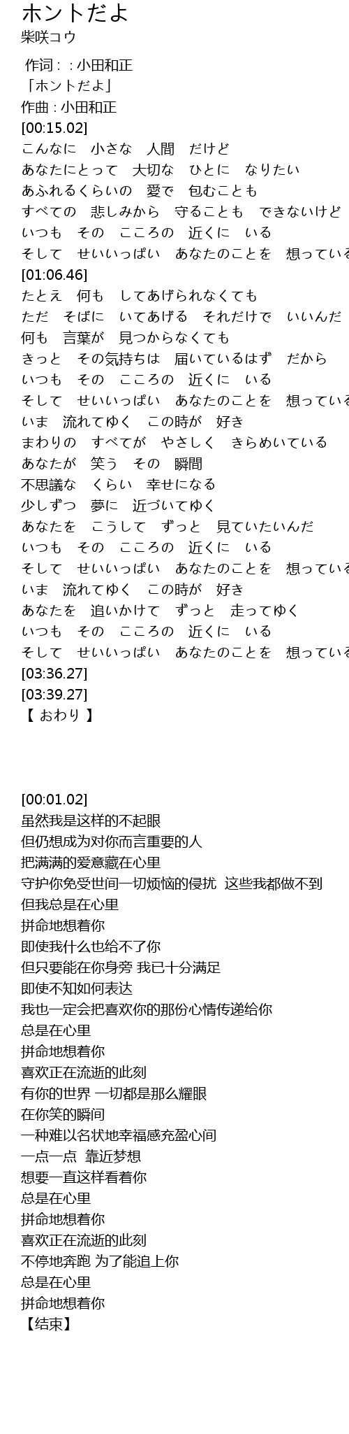 | [00:01.02] | 「ホントだよ」 |