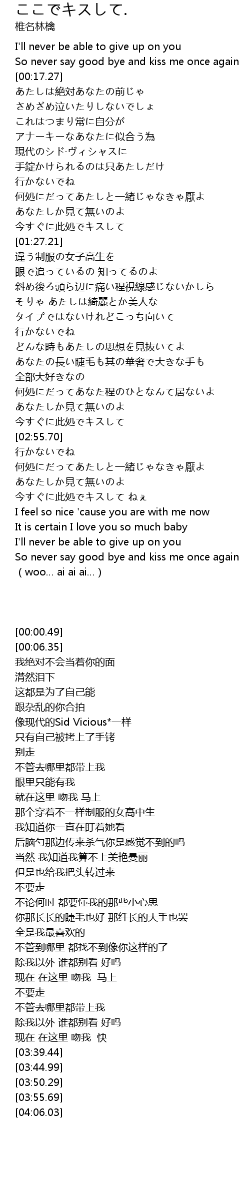 | [03:33.59] | 今すぐに此処でキスして ねぇ |