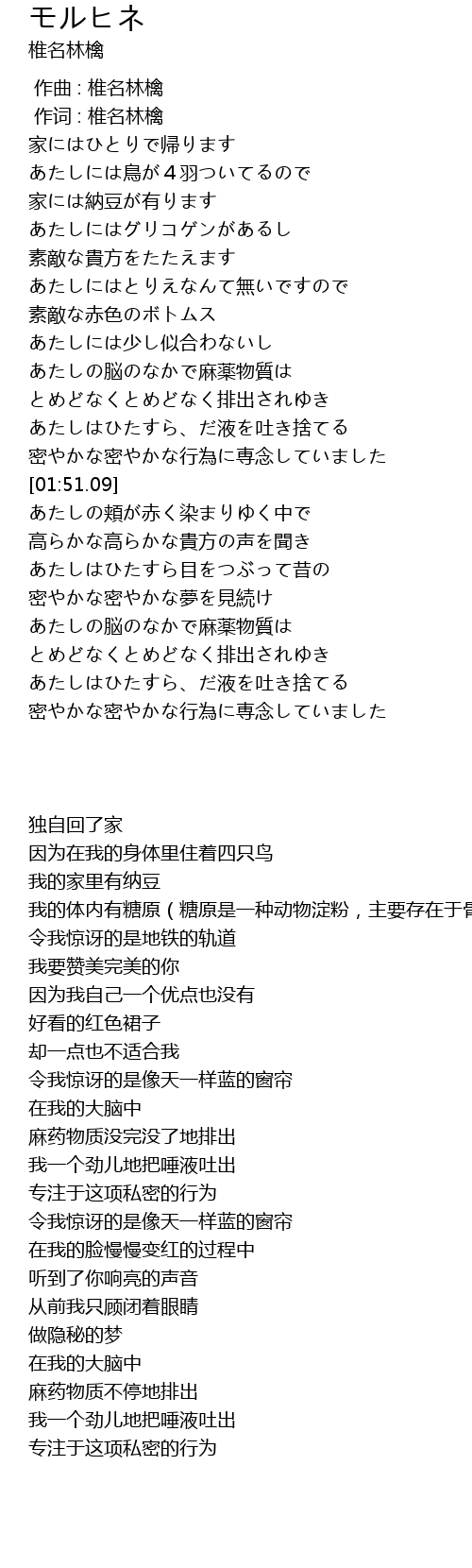 | [00:01.00] | 作词 : 椎名林檎 |