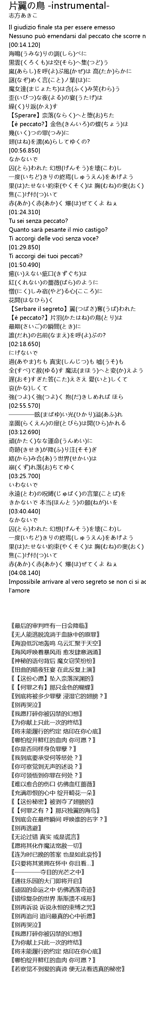 | [02:07.270] | 【è peccato?】片羽(かたはね)の鳥(とり)は |