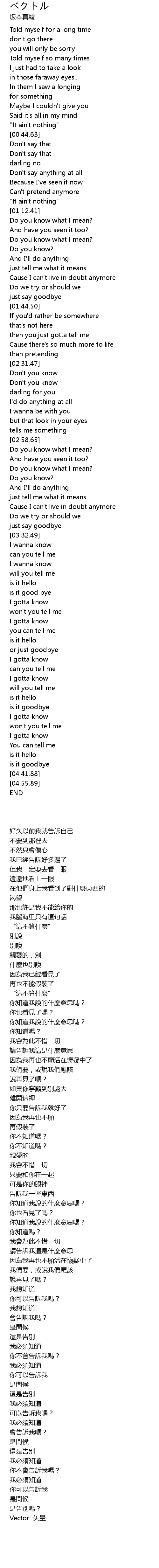 | [03:50.30] | I gotta know |