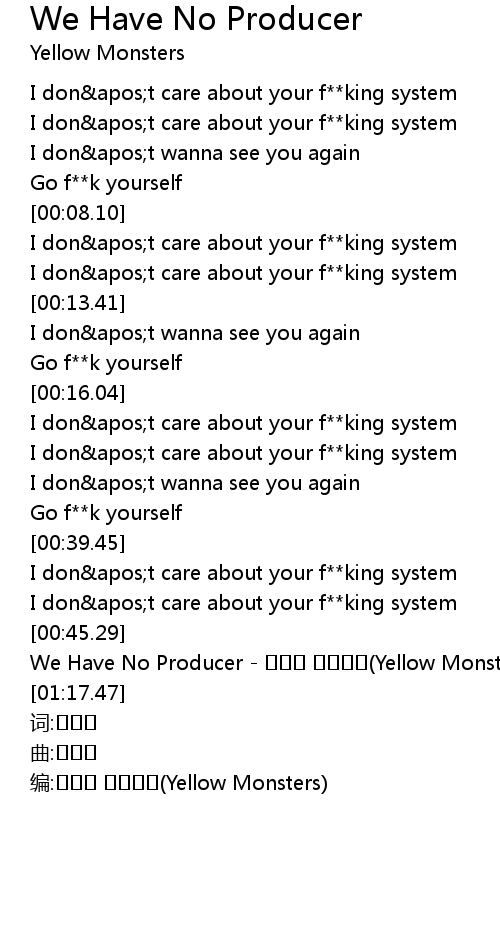 | [01:14.98] | We Have No Producer Yellow Monsters |