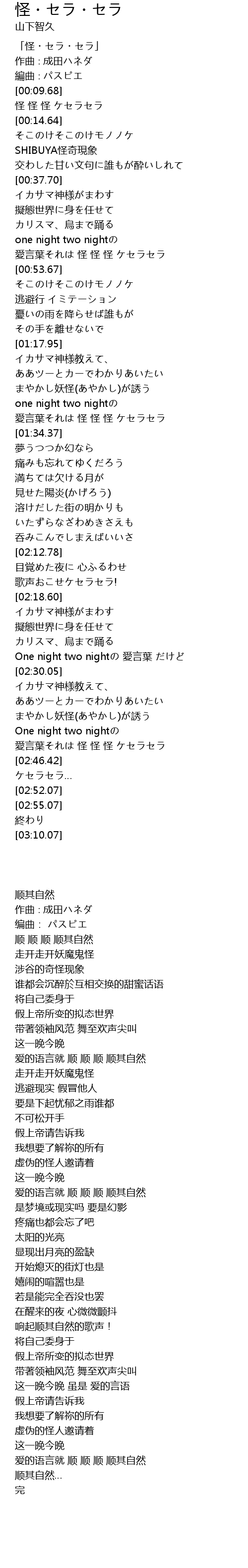 | [00:00.68] | 「怪・セラ・セラ」 |