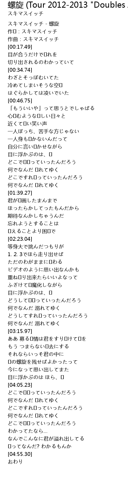 | [00:00.04] | スキマスイッチ - 螺旋 |