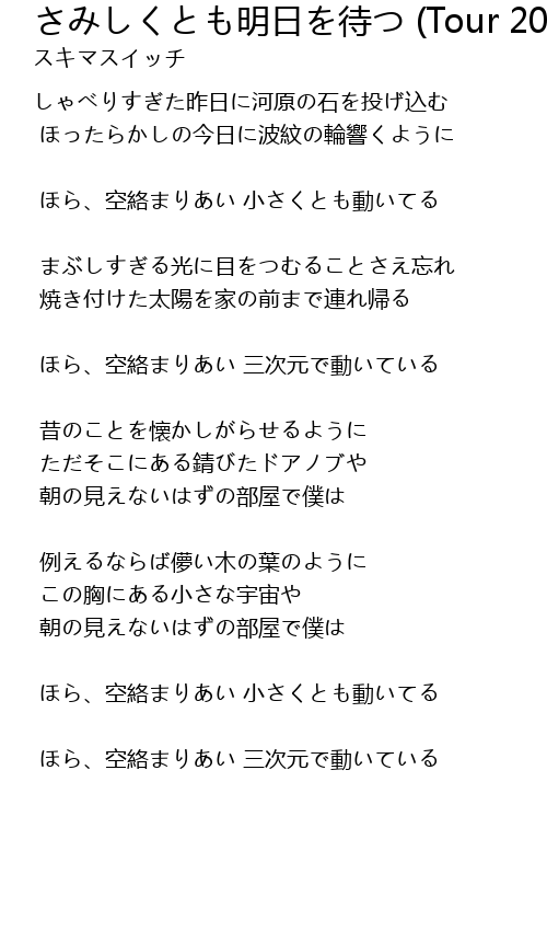 | Song | さみしくとも明日を待つ (Tour 2012-2013 "Doubles All Japan" / Live) |