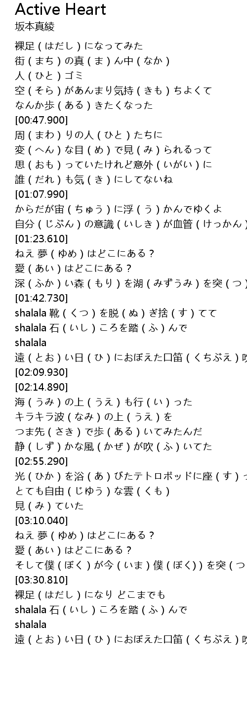 | [03:31.170] | 裸足(はだし)になり どこまでも |