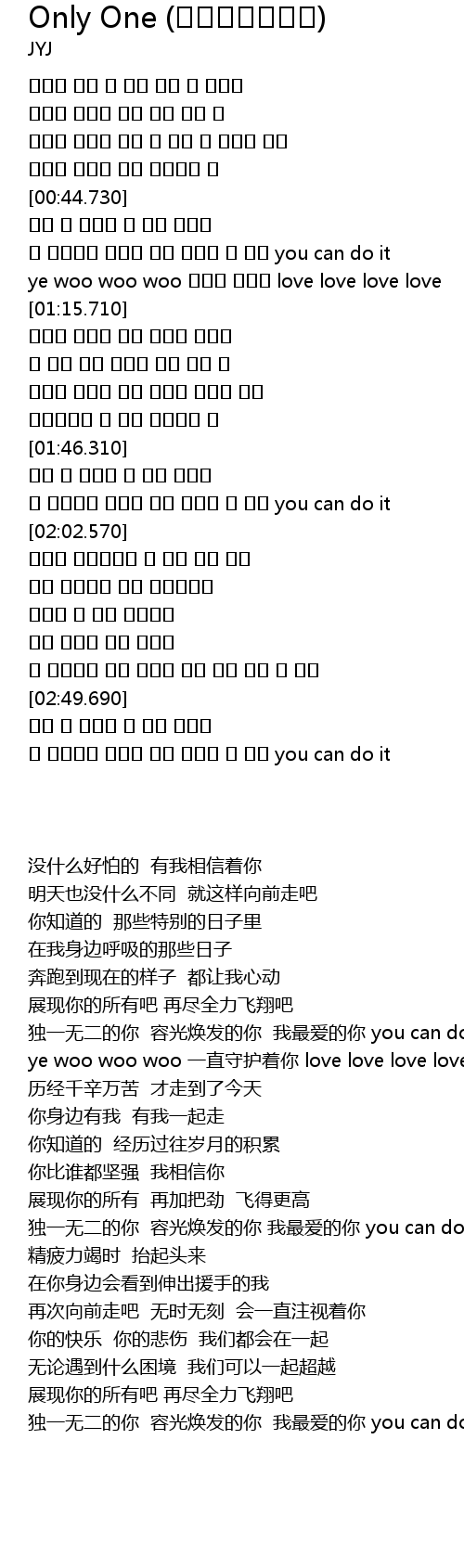 단 하나뿐인 빛나는 너의 모습이 난 좋아 you can do it |