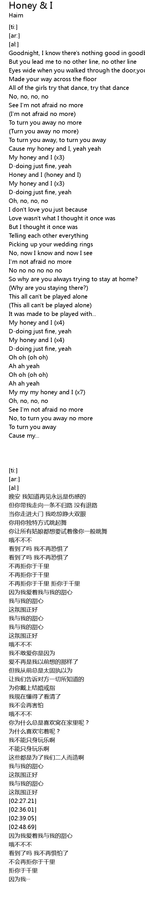 [02:50.99] My my my honey and I (x7)