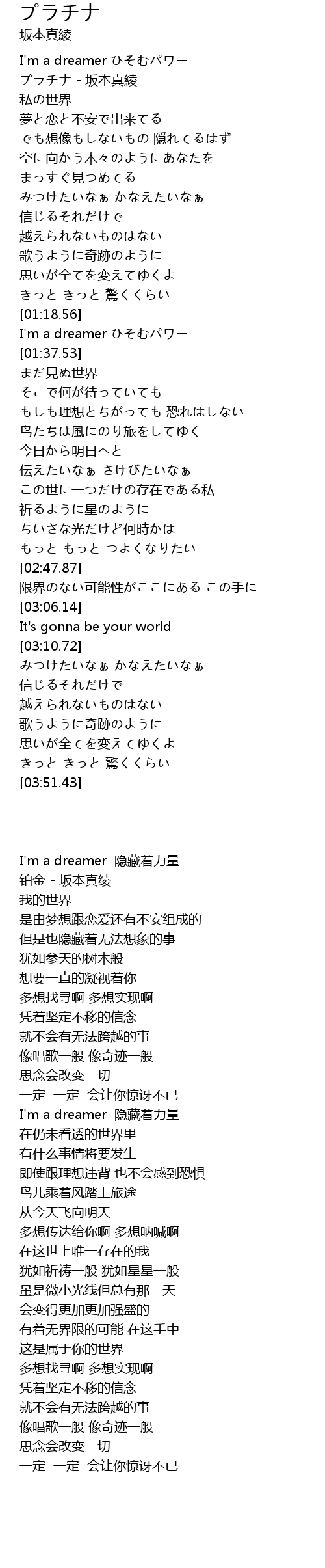| [00:08.35] | プラチナ - 坂本真綾 |