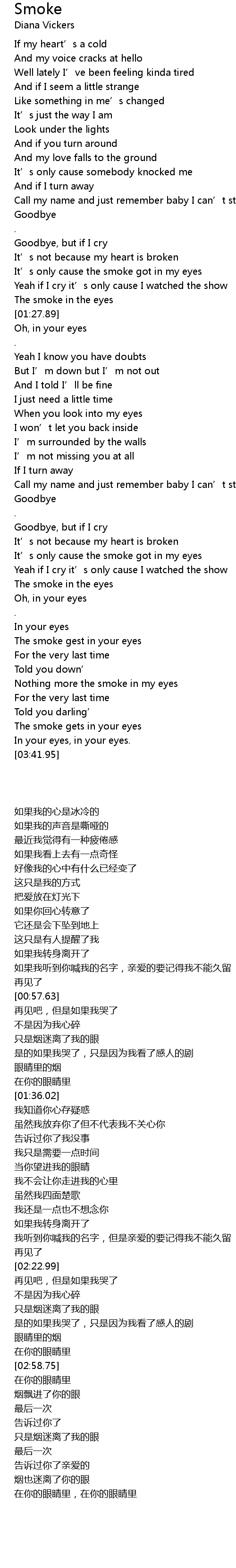 | [02:35.69] | It' s only cause the smoke got in my eyes |