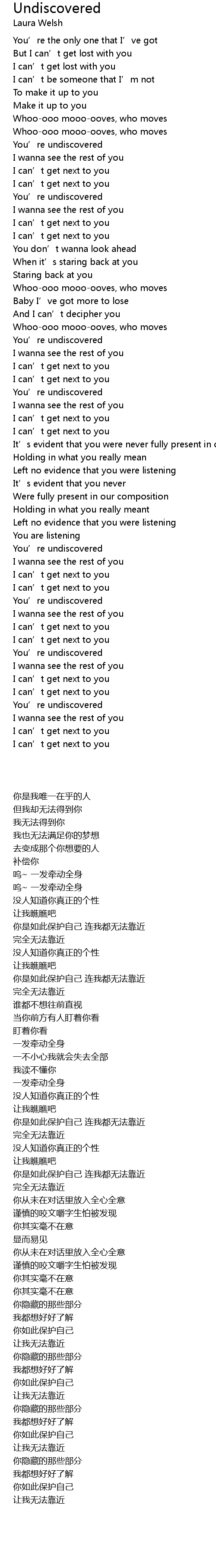 | [02:30.19] | You' re undiscovered |