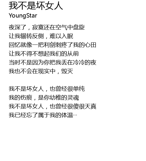 | wǒ bú shì huài nǚ rén, yě zēng jīng hěn dān chún | |