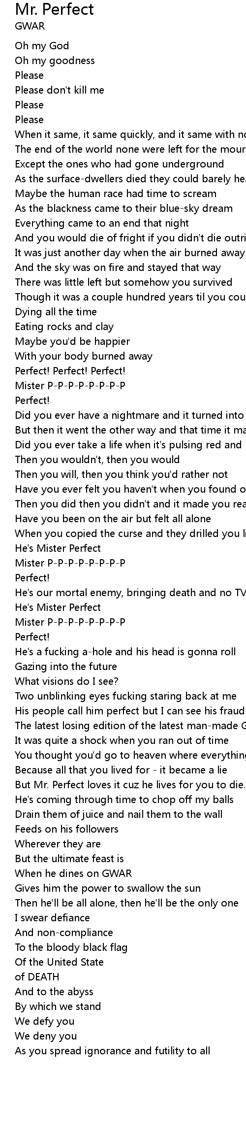 But Mr. Perfect loves it cuz he lives for you to die. |