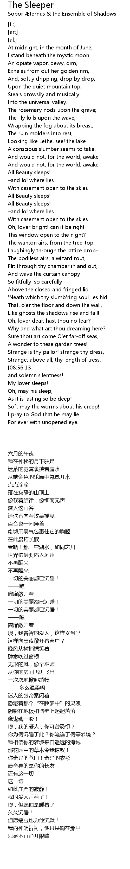 | [04:09.75] | And would not, for the world, awake. |