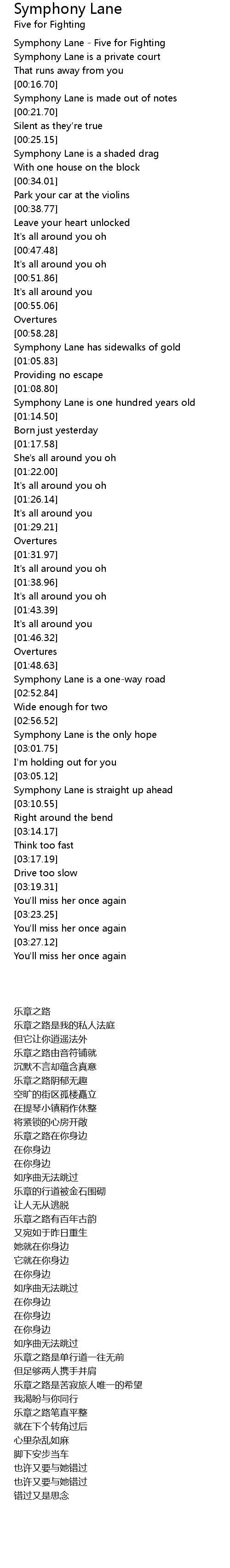 Symphony Lane - Five for Fighting |