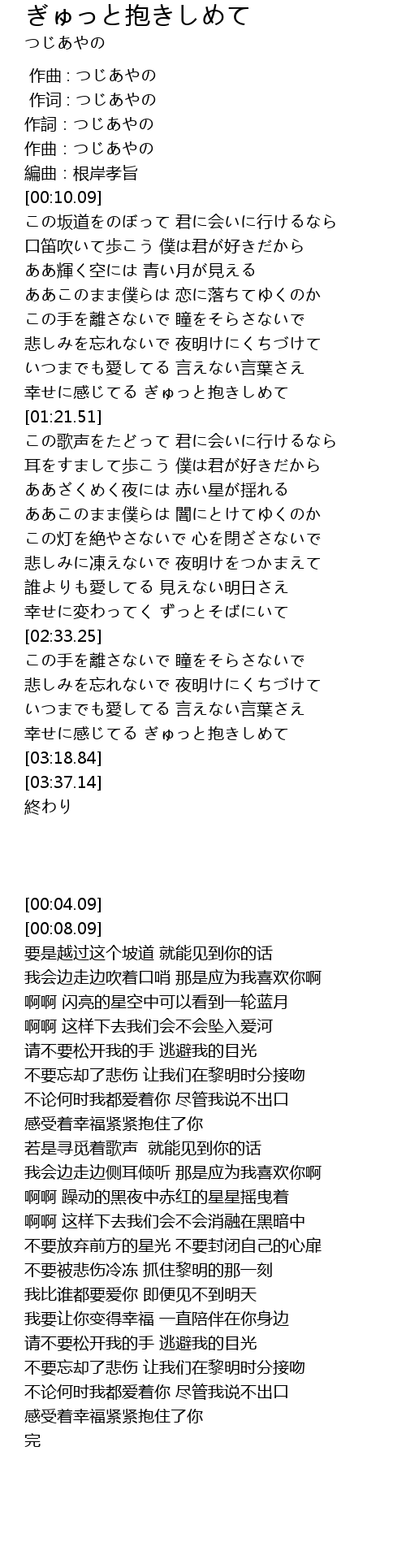 | [03:09.69] | 幸せに感じてる ぎゅっと抱きしめて |
