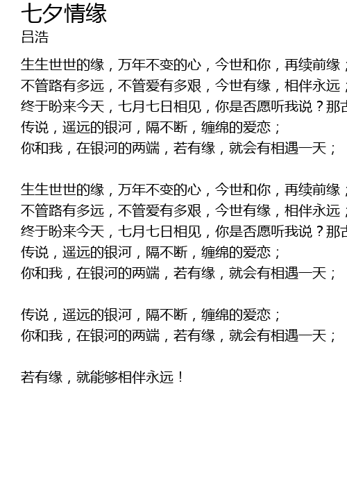 | 终于盼来今天,七月七日相见,你是否愿听我说?那古老而永恒的传说; | |