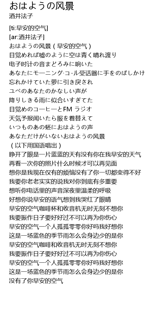 | [03:00.376] | 早安的空气一个人孤孤零零你好吗我好想你 |