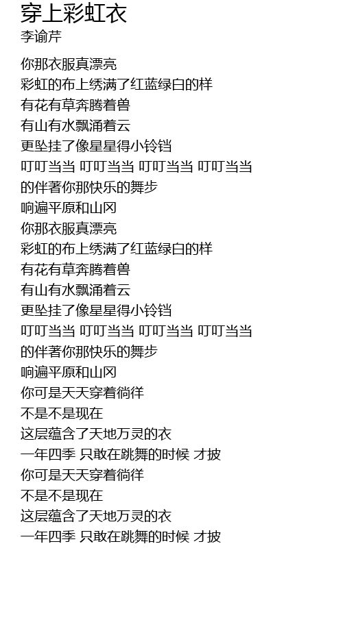| [01:56.04] | 你那衣服真漂亮 |