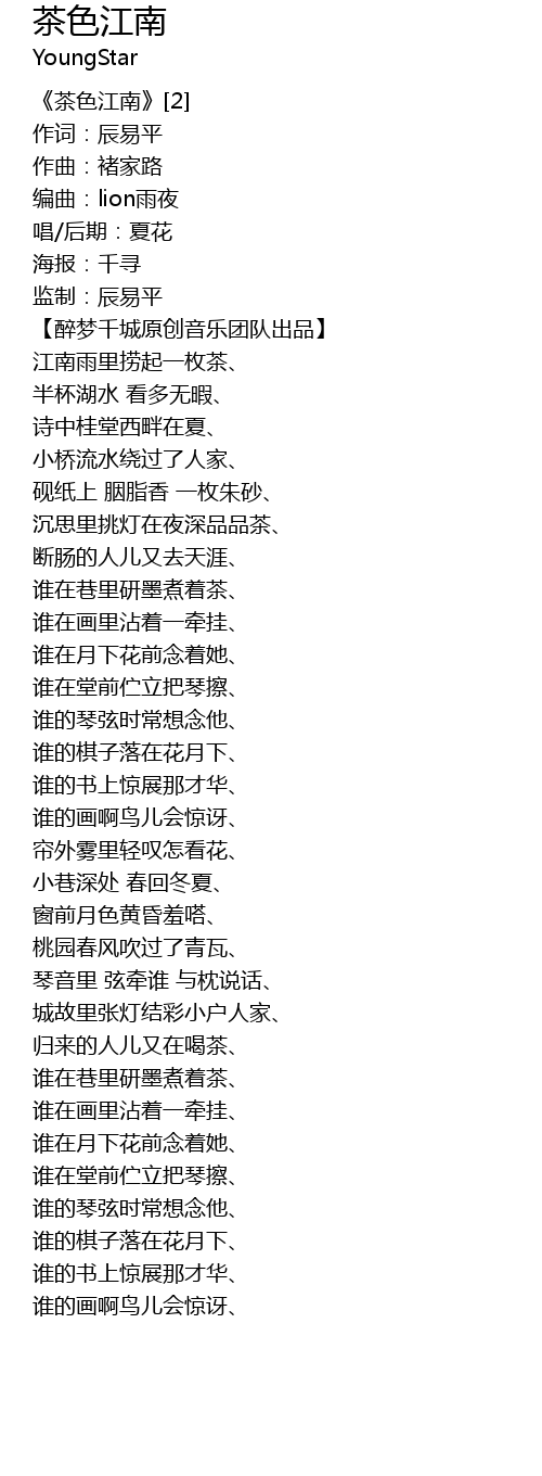 | jiāng nán yǔ lǐ lāo qǐ yī méi chá | |