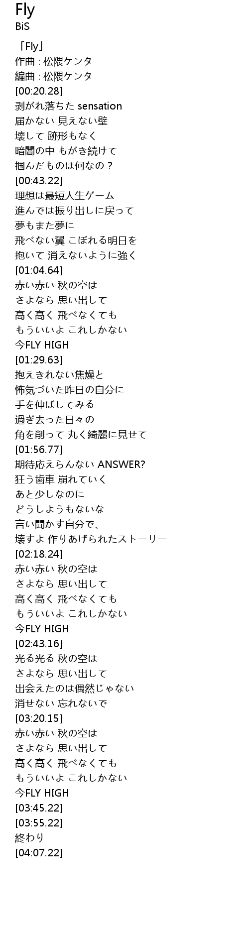 | [00:54.22] | 飛べない翼 こぼれる明日を |