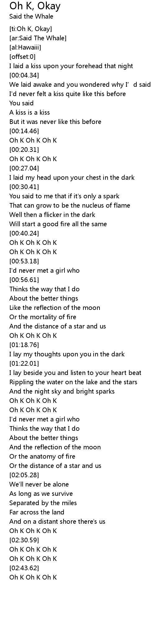 | [00:04.97] | We laid awake and you wondered why I’d said |
