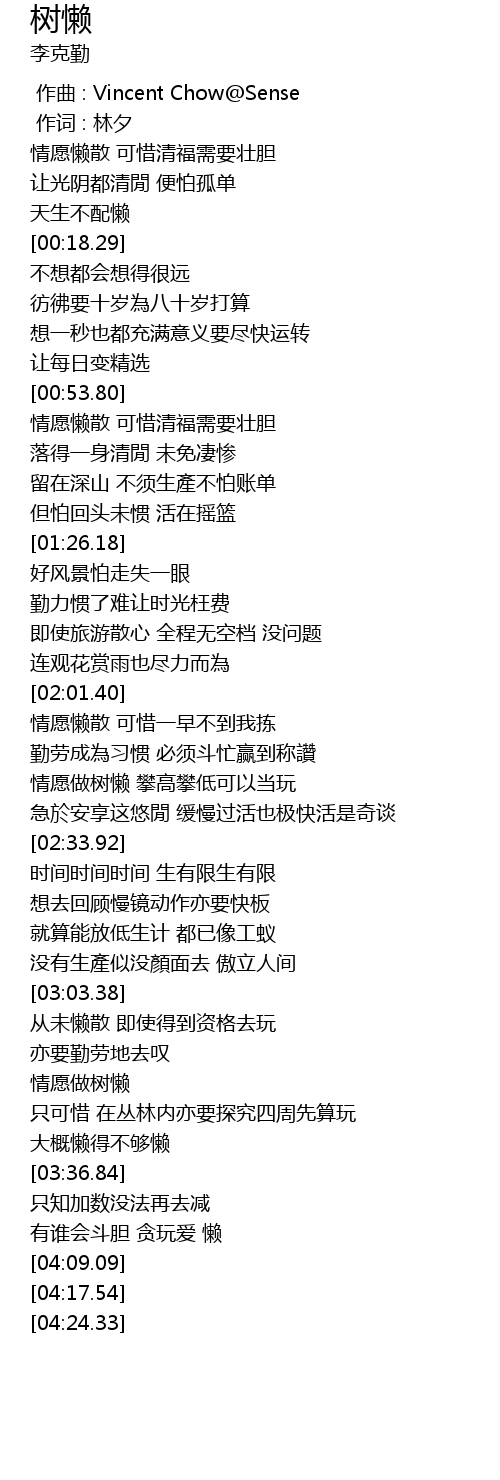 | [03:18.70] | 情愿做树懒 |