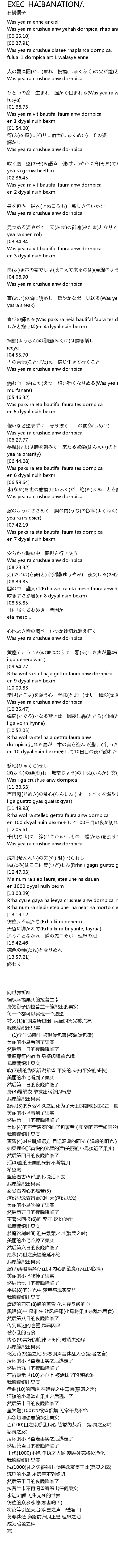 | [02:20.28] | 吹く風 望(のぞ)み語る 健(すこ)やかに育(そだ)てたし(Was yea ra grruw heetha) |
