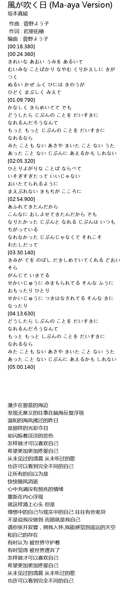Song 風が吹く日 (Ma-aya Version)