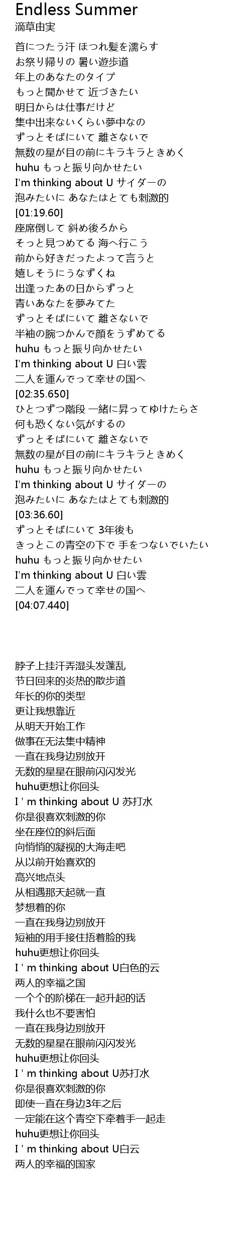 | [02:24.90] | I'm thinking about U 白い雲 |
