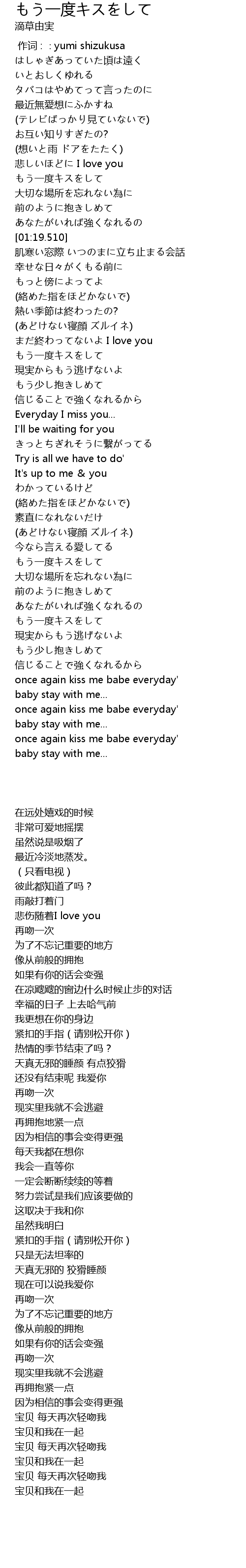 | [02:56.430] | もう一度キスをして |