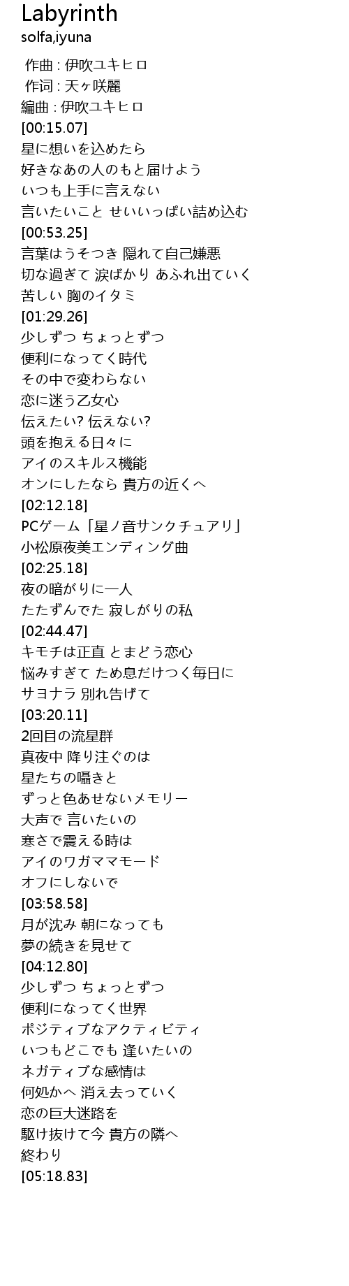 | [02:15.18] | PCゲーム「星ノ音サンクチュアリ」 |