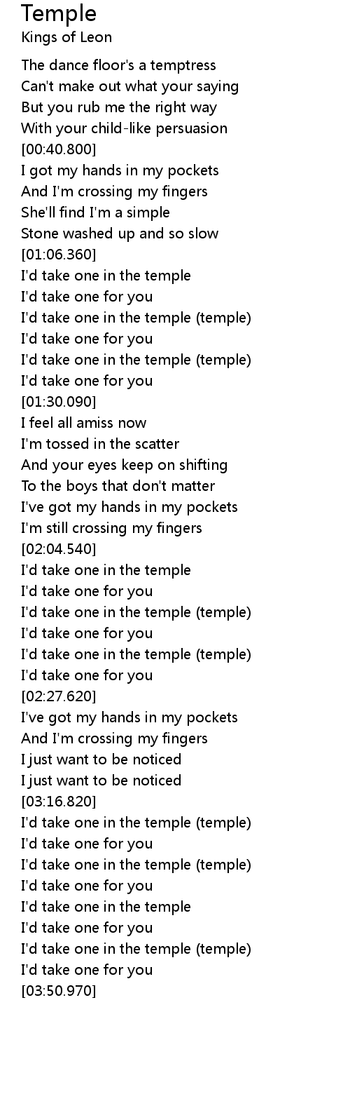 I'd take one in the temple (temple) |