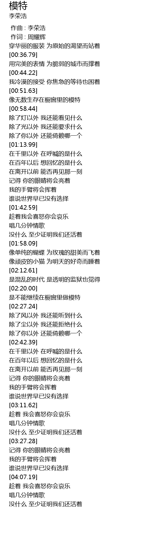 | [00:00.00] | 作曲 : 李荣浩 |