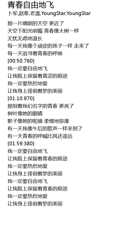 | [00:46.70] | 每一天追寻着青春的呼唤 |