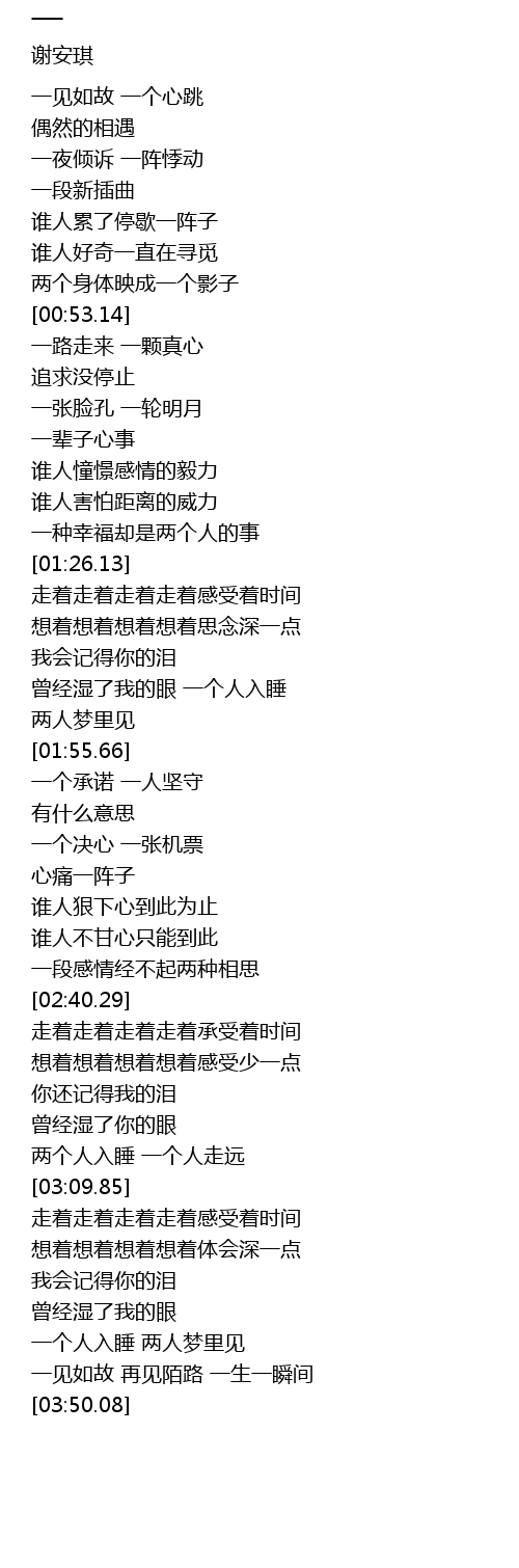 | [03:39.99] | 一见如故 再见陌路 一生一瞬间 |