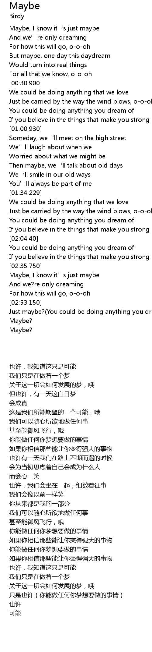 | [00:00.0] | Maybe, I know it‘s just maybe |