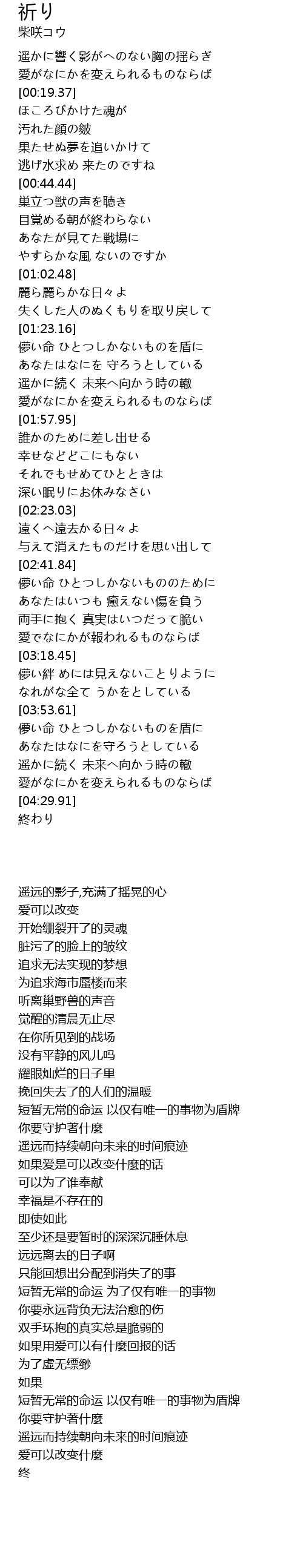| [03:54.97] | 儚い命 ひとつしかないものを盾に |