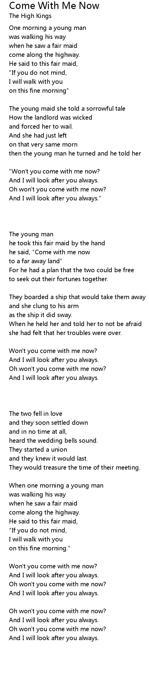 Won't you come with me now? |