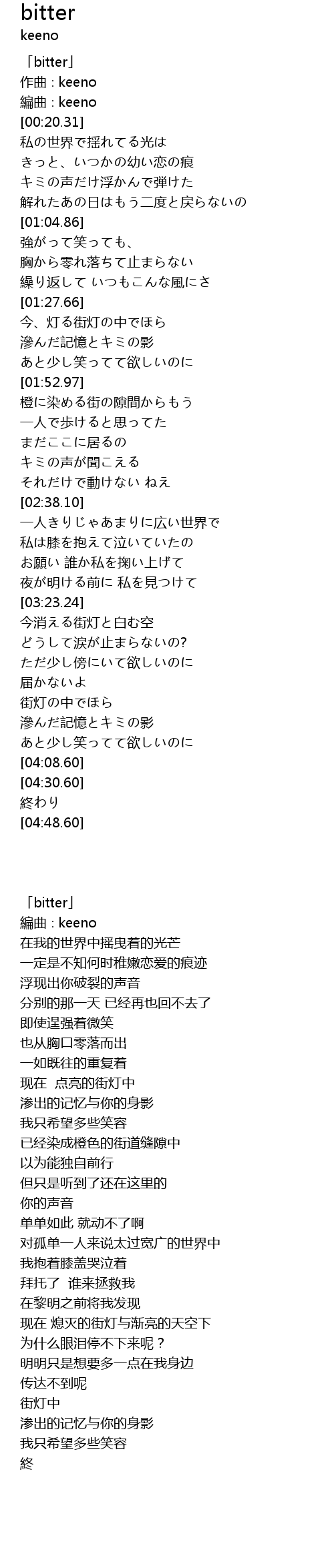 | [00:00.31] | 「bitter」 |