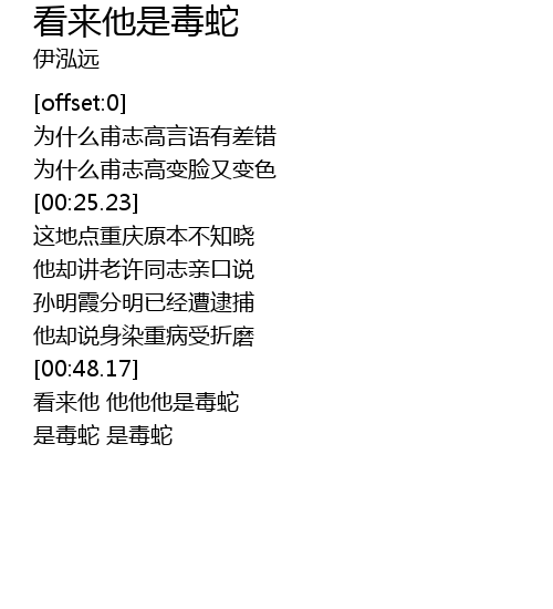 | [00:49.78] | 看来他 他他他是毒蛇 |